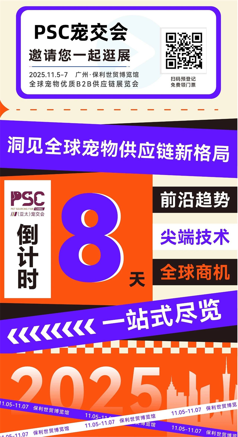 Faltam apenas 8 dias para a 2ª PSC Pet Fair, realizada de 5 a 7 de novembro de 2025 no Guangzhou Poly World Trade Center Expo!